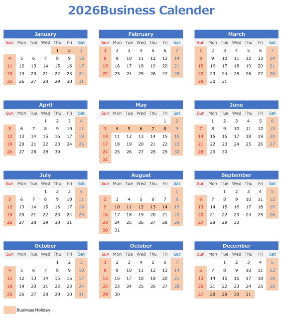 We appeared our business calender of 2020.